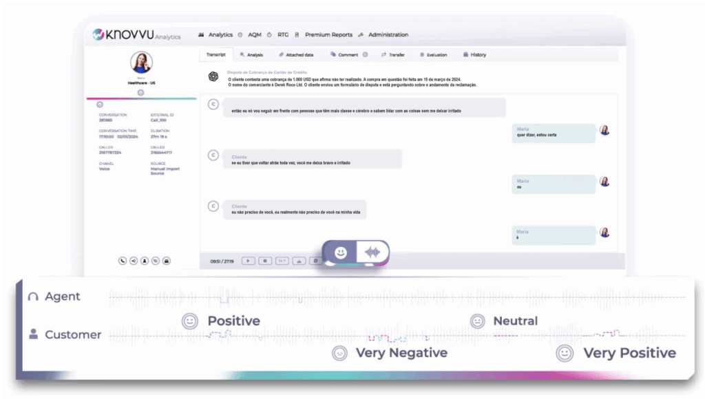 A aderência a scripts, os indicadores acústicos e as características de sentimento podem ser monitorados automaticamente, permitindo que os supervisores tenham total visibilidade do desempenho dos agentes e forneçam feedbacks objetivos.